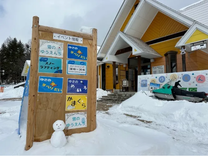スノーモービルや雪で作られた滑り台、迷路で遊ぶことができます。
