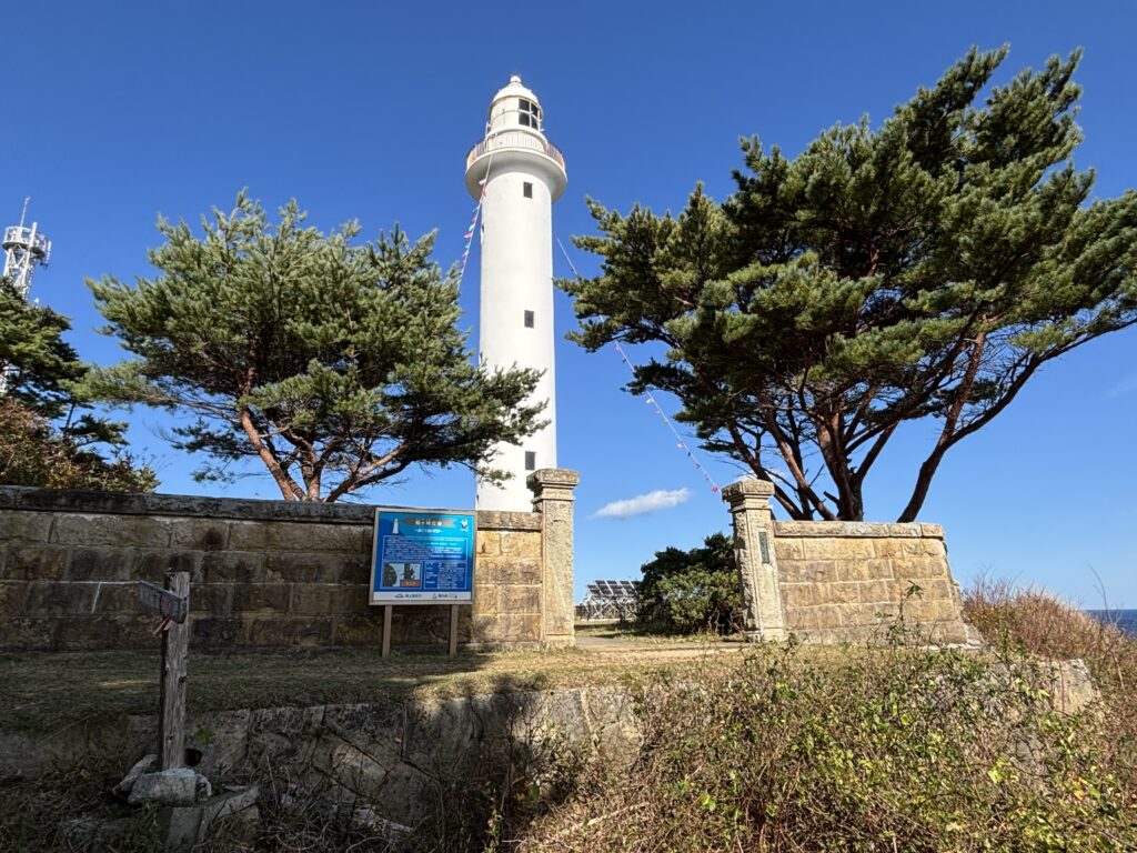 本州最東端の碑まで辿り着くと、すぐ先に白い灯台が姿をあらわします。