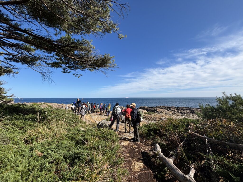 このイベントは、みちのく潮風トレイル全線開通6周年を記念して浄土ヶ浜ビジターセンター運営協議会さんが主催され、ガイドさんと共に海岸線や松林、断崖絶壁を眺めながらトレイルルートをトレッキングしながら本州最東端の魹ヶ埼灯台を目指すというものです。