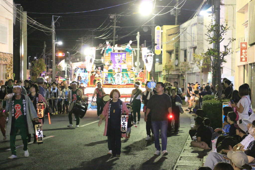 大勢の観客の前を船山車が通り、大盛り上がり。